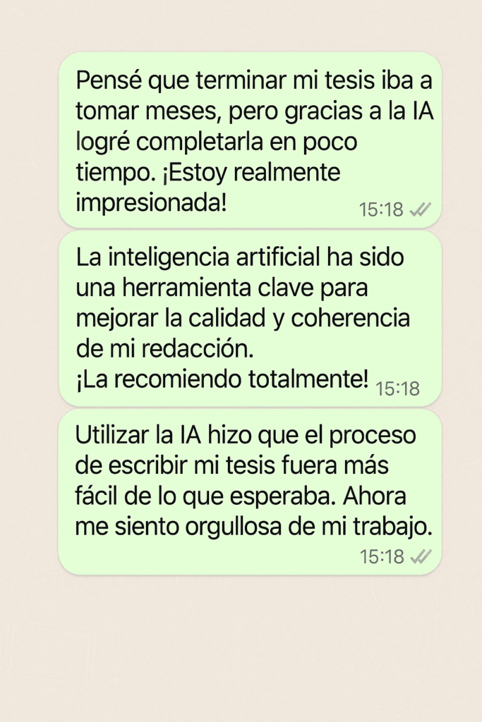 No. Tesis Acelerada enseña cómo usar la IA de forma ética y responsable para organizar tus ideas, mejorar claridad y avanzar con seguridad. La responsabilidad académica y la redacción final siempre serán tuyas.