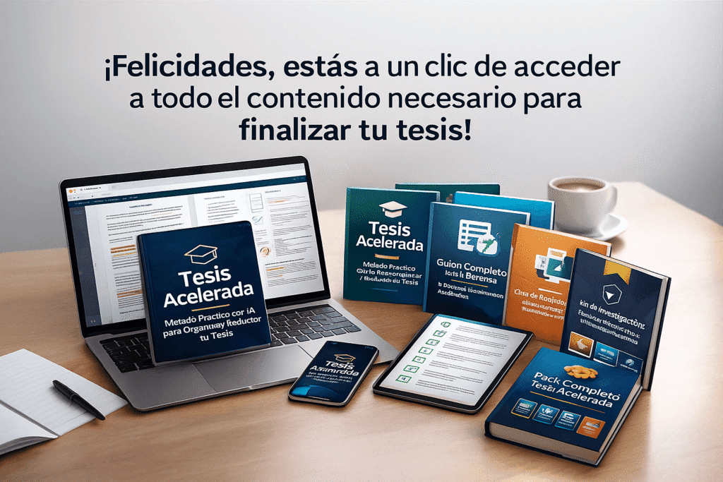 Todo el contenido de Tesis Acelerada es 100% digital. Esto permite que accedas de inmediato a los materiales, los utilices desde cualquier dispositivo y disfrutes del programa por un precio mucho más accesible que una versión física.
